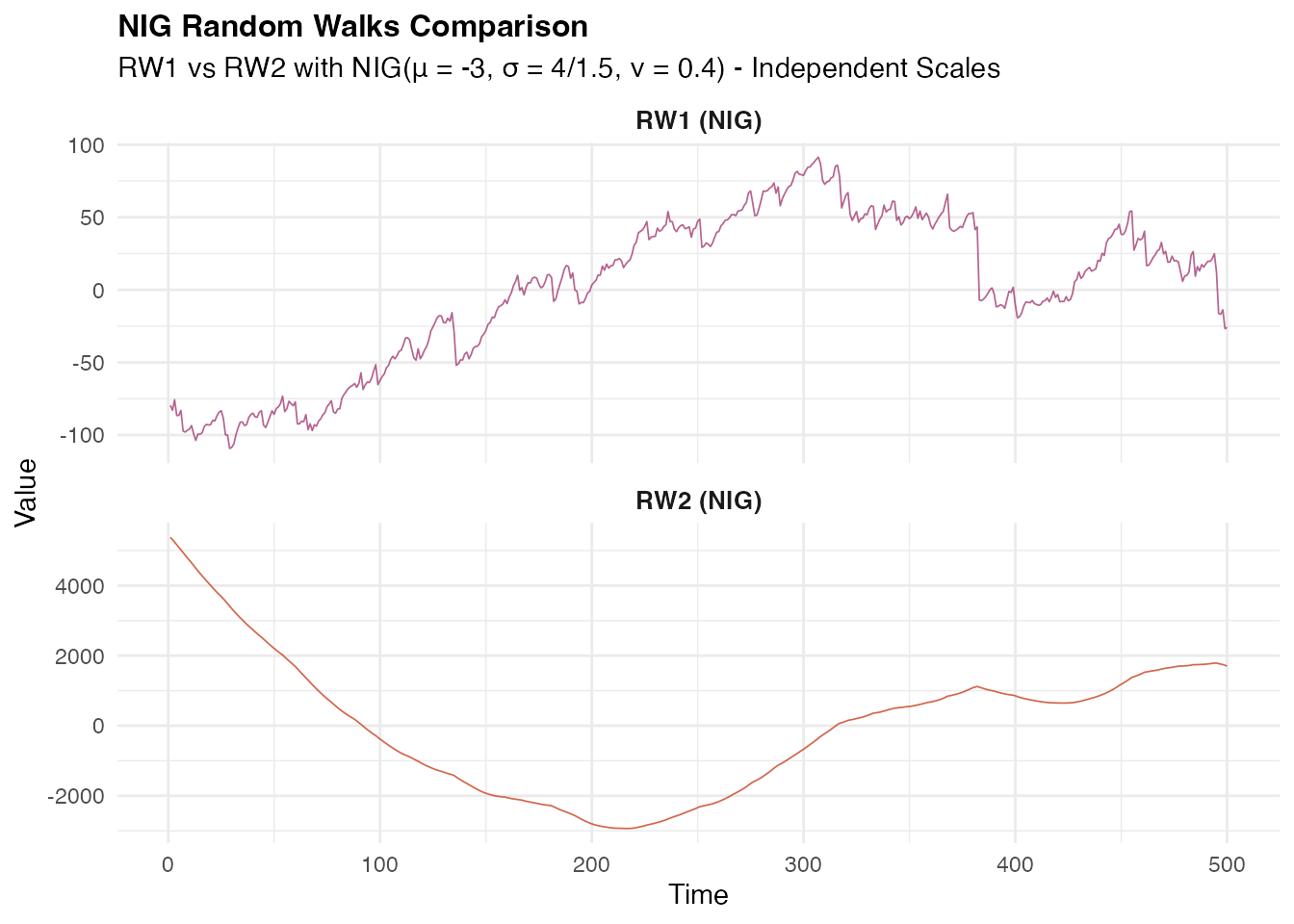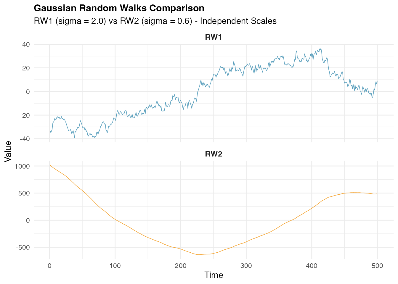 Intrinsic Nature: Random walk models are intrinsic processes defined by their difference structure rather than explicit covariance functions. This leads to: