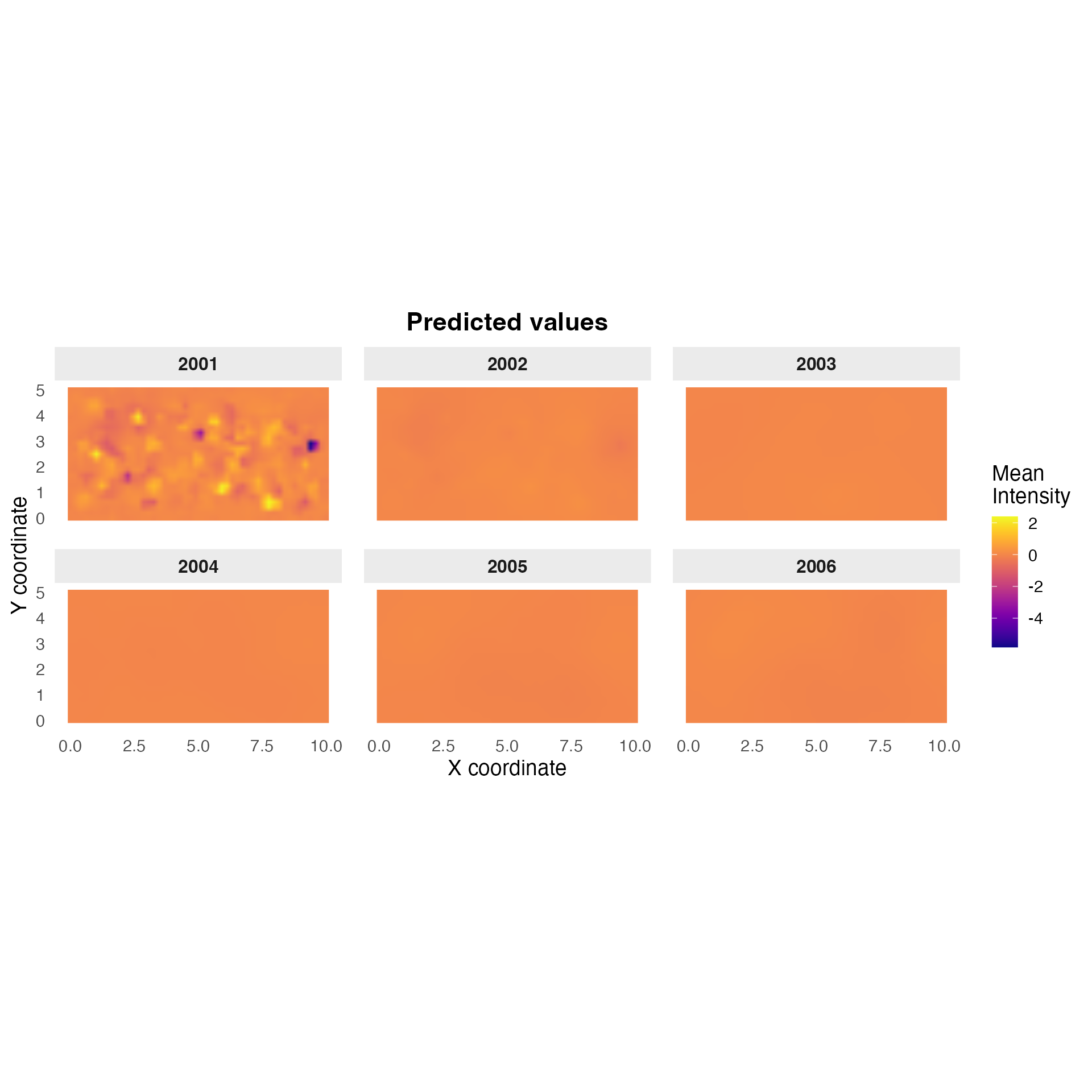 pred_data$year <- pred_data$time_index + 2000 # Convert to calendar yearsThe prediction grid provides comprehensive coverage for visualization: