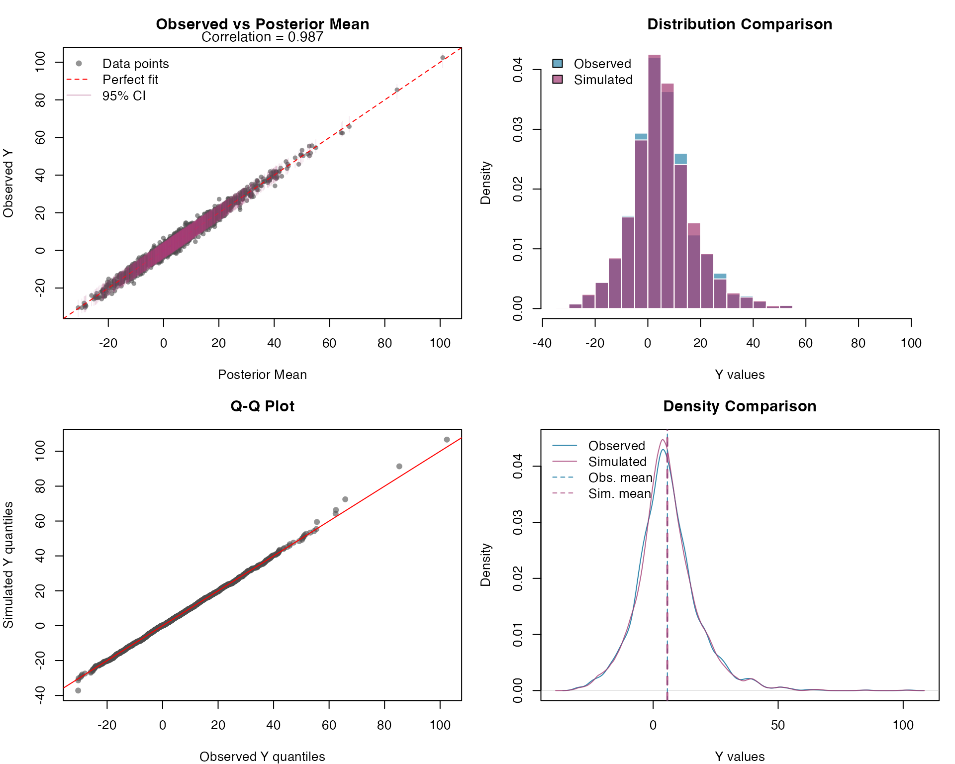 xlab = "Observed Y quantiles", ylab = "Simulated Y quantiles",