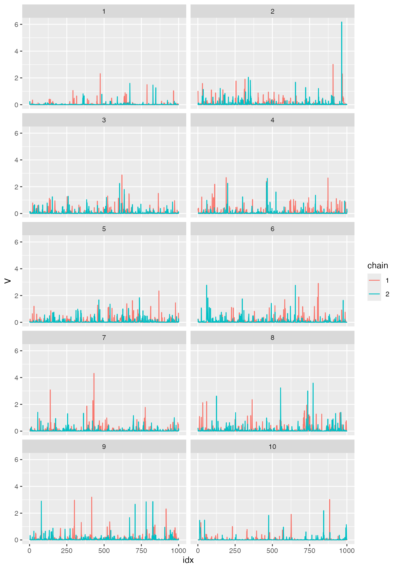 ggplot(df_V, aes(x = idx, y = V, col = chain)) +