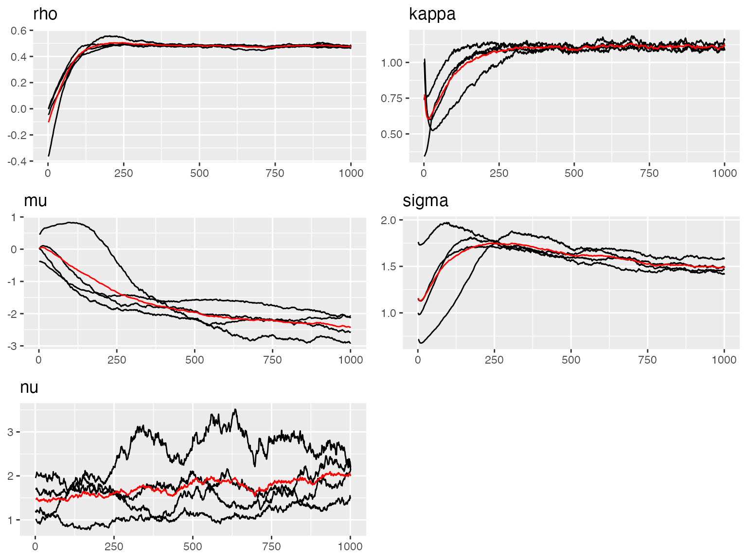 - captures temporal dependencies (e.g., AR(1), random walk)
