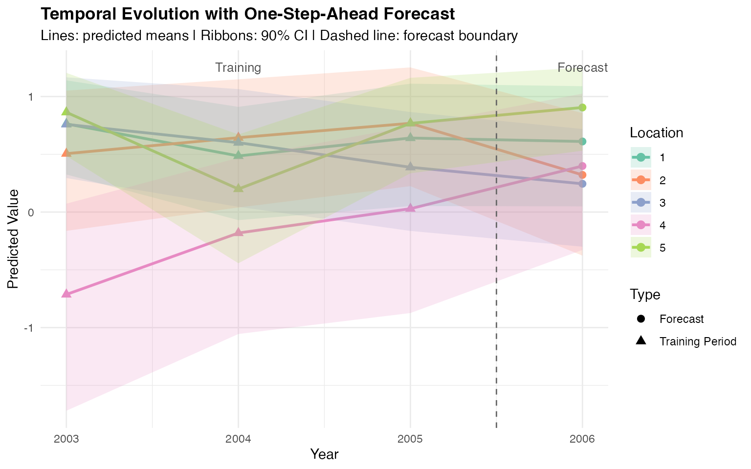 Flexible temporal models: Supports AR(p) processes, random walks, and Matérn temporal dynamics beyond the AR(1) structure